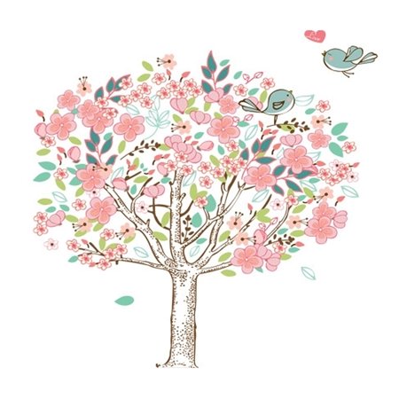Drawing Room Flower Tree Bird Removable Wall Sticker Decal