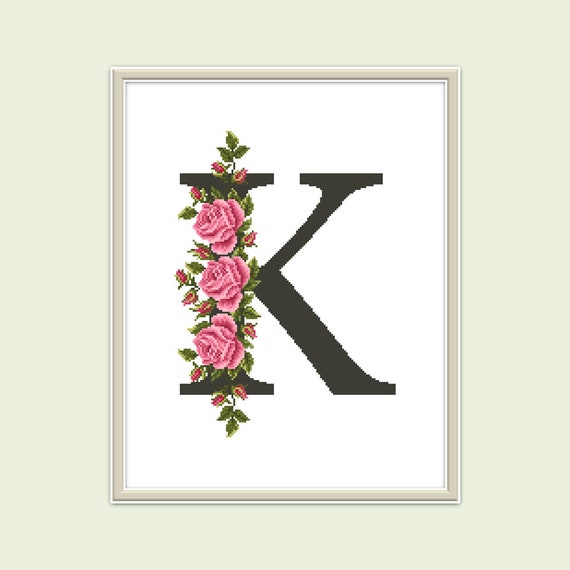 Letter K Modern Cross Stitch Pattern Roses Cross Stitch Monogram Cross Stitch Floral Initial Cross Stitch Instant Download Pdf 386